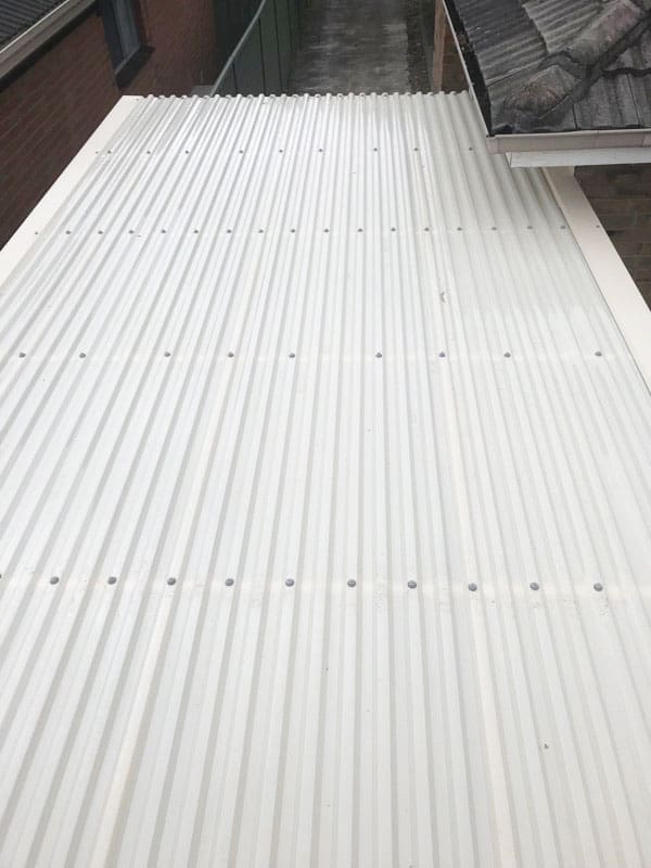 As you can see, the finished polycarbonate roof installation looks terrific and the new guttering and fascia has returned a sense of solidity to the rear building.