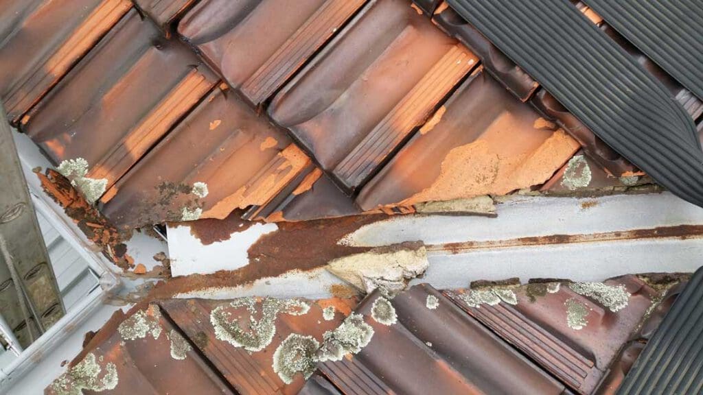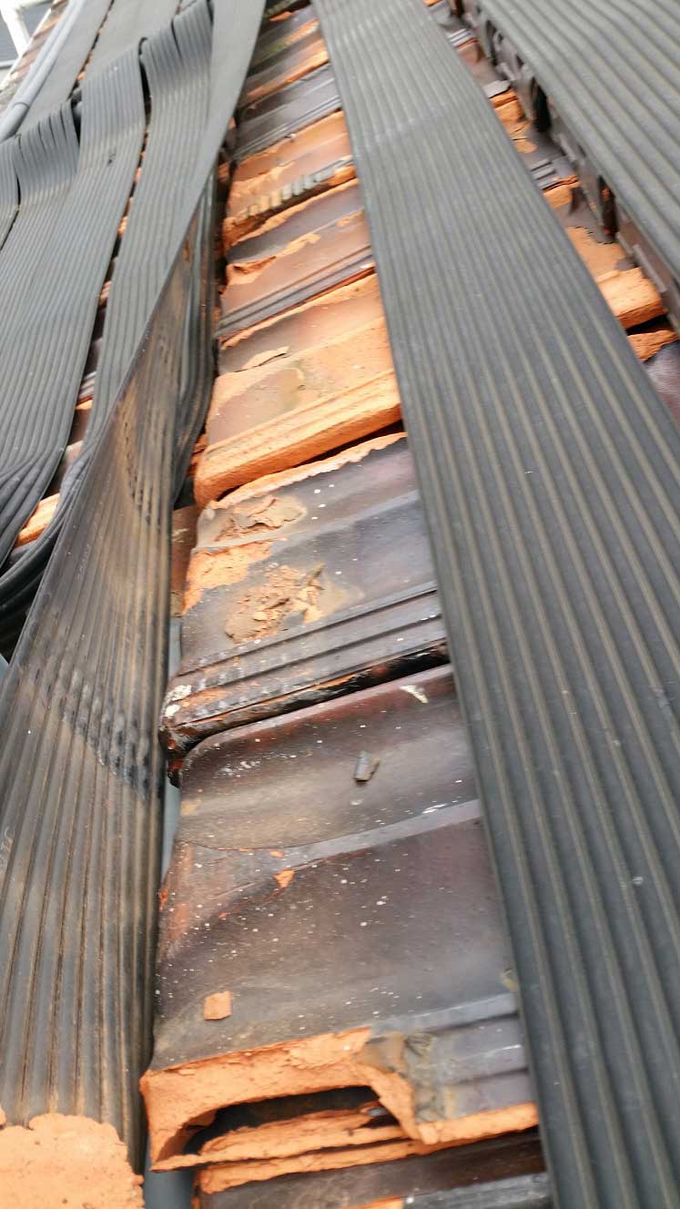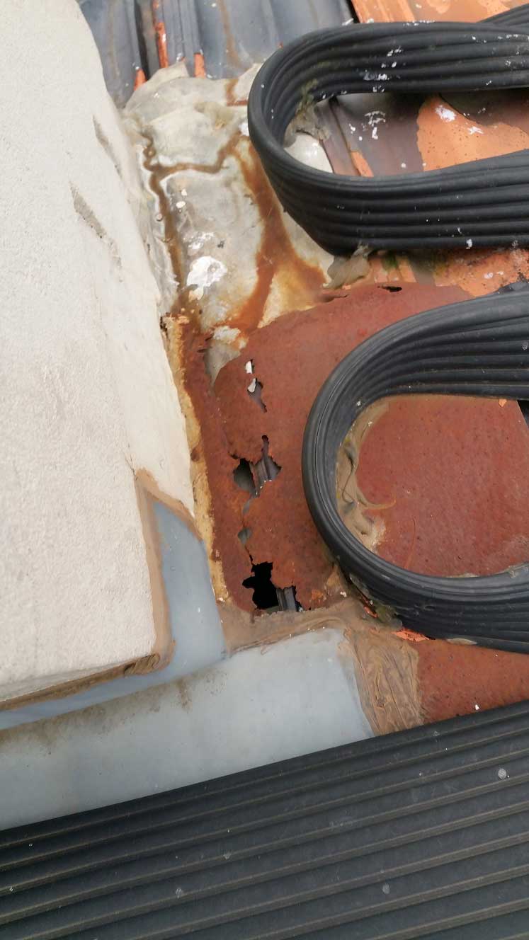 We strongly recommend you regularly check the system for any splits or damage which may lead to leaks. We recently attended to reported roof leaks at a property that had a tiled roof. The pool’s solar strip system had developed a couple of splits enabling the salt water to run across the roof tiles and into the metal valleys. The resulting corrosion meant replacement of the damaged tiles and valleys was necessary. See our pics.
