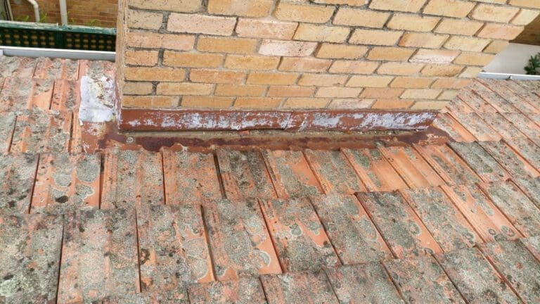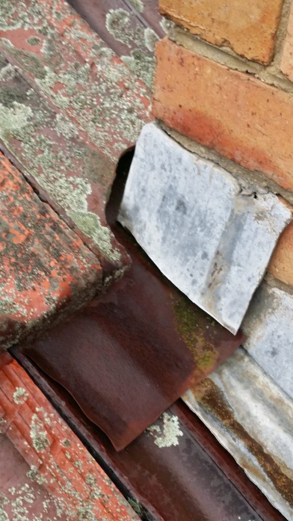 Rust then develops generally due to the build up of the debris – leaf and dirt – sitting on the metal flashings and remaining damp for long periods.