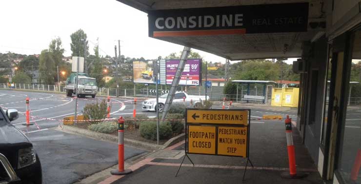 A recent verandah metal reroof in Strathmore involved the preparation of a traffic management plan to redirect pedestrians away from the work area and also to warn oncoming traffic of the need to slow down due to changed traffic conditions. The traffic management plan was required for submission to Vic Roads and also the the local Council for permit applications. Permits were required by both Vic Roads and the local Council for the temporary changes to traffic conditions. A Council Permit was also required to enable our staff to place a work platform over the footpath for the duration of the works.