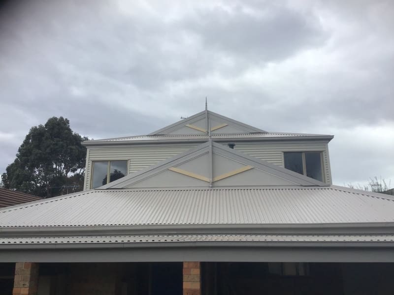 So the initial brief was to quote on replacing the tiled roof with Colorbond Roofing and then optionally price to replace all the weatherboards on the upper storey with Corrugated Colorbond Cladding. The roof replacement was to include changing from Squareline guttering to Quad guttering.