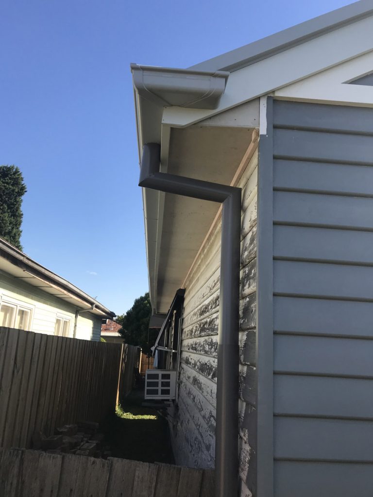 We also quoted to have an asbestos removalist company remove the eaves sheets in accordance with EPA regulations and then installed new cement sheet eave lining boards to replace them. We also quoted to supply and install new Colorbond fascia cover with Colorbond Quad eaves gutter and 4 new downpipes. Roofrite always provides its staff with the safest and quickest access to get a job done so some scaffold hire was included in the quote to ensure we met with Worksafe’s best OH&S safe work practices. A typical eaves and gutter replacement of this nature including asbestos removal generally comes in around the $10,000 mark.