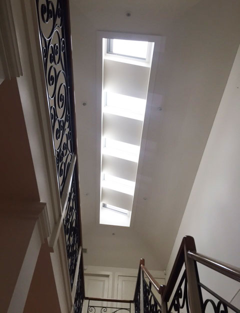 Take for instance a project we completed in Malvern recently. The entrance hall looked pretty amazing. It had a beautiful tiled floor and a fabulous staircase up to the first level. A lightwell had been built years before but it was pretty basic and was finished with polycarbonate sheeting that cheapened the overall impact.