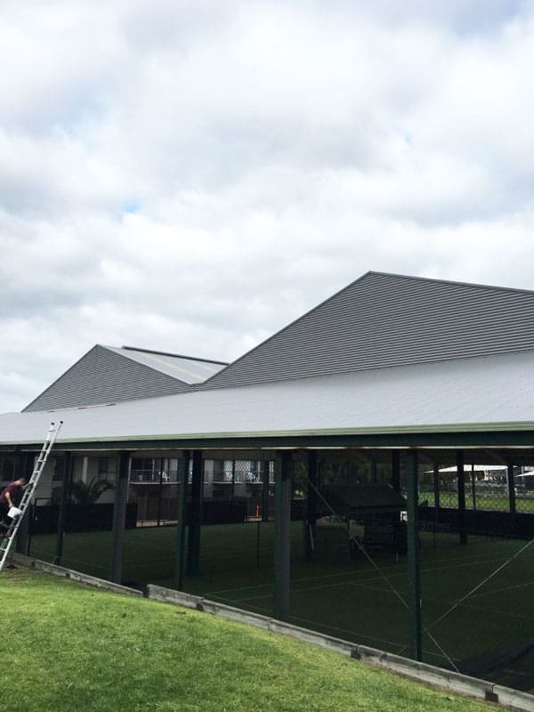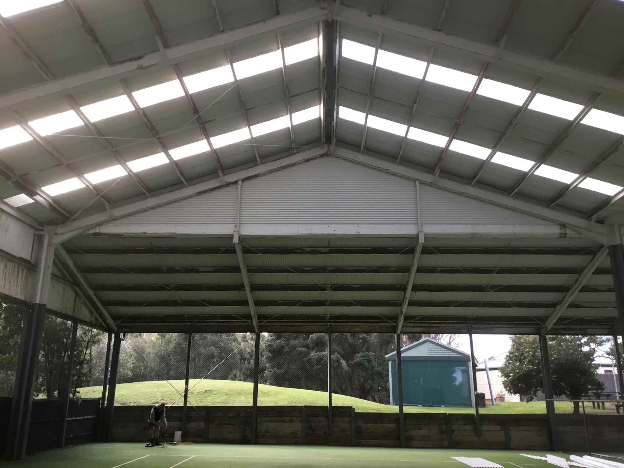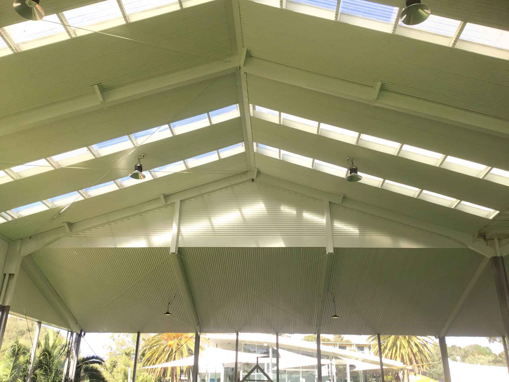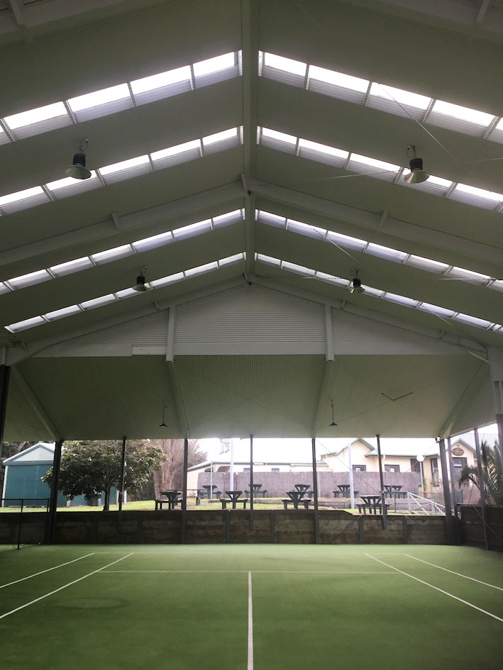The internal colour chosen for the pavilion’s Colorbond corrugated iron was Surfmist. You’d have to agree, it complements the light and airy feel of the pavilion and contrasts wonderfully with the green of the tennis courts.