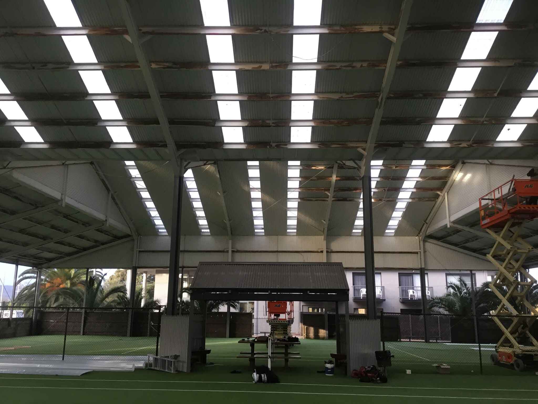 Stage 2 saw us returning during the Country Club’s 2017 quiet season. This time it was to clad the inside of the tennis pavilion – an ideal winter project for us. Framing timbers were required to ensure a good finish to the panels.