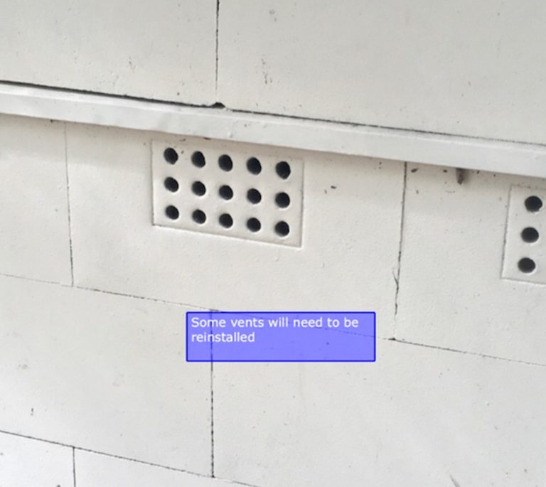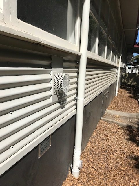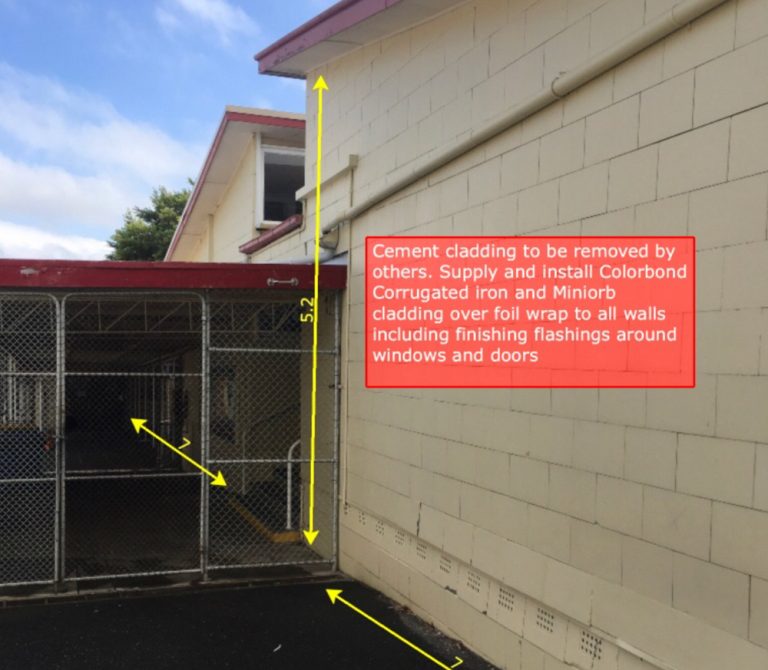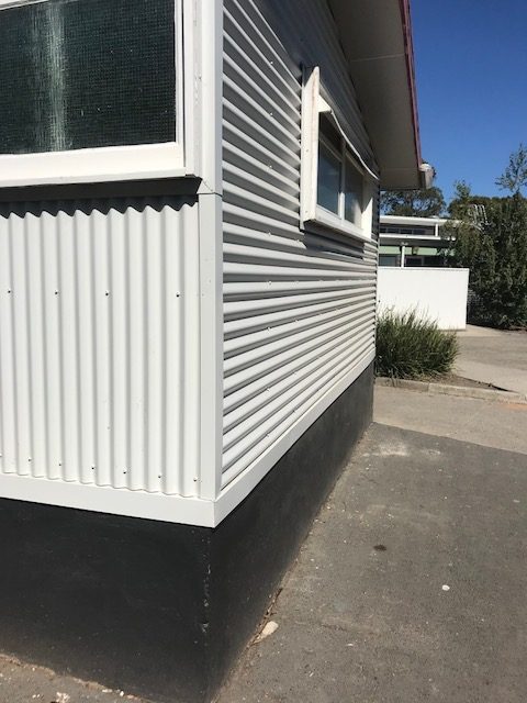 Our proposal involved replacing the existing cement sheet cladding with Colorbond cladding laid over sizalation wall wrap and included finishing flashings around sills and windows. At the sub floor level, we proposed installing new cement sheeting to create a visual break between walling and sub-flooring. New top-hat battens were also needed for fixing the colorbond sheets to.